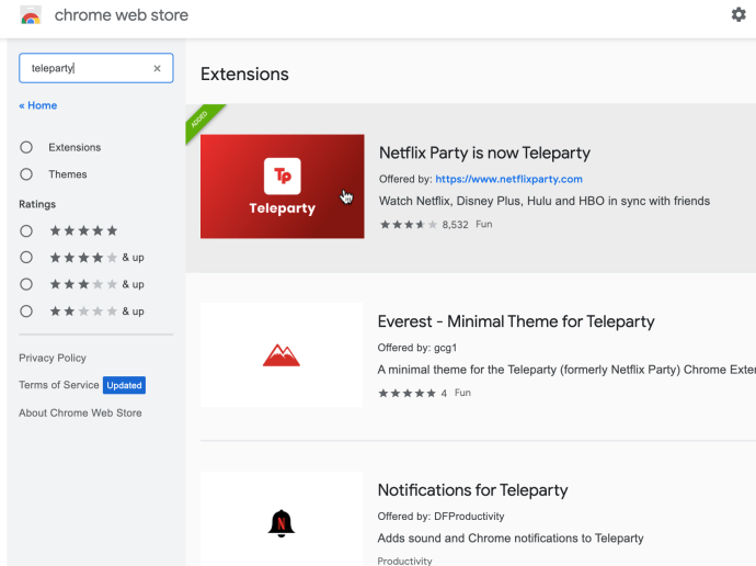 - Access the "Chrome" or "Edge" addition store and search for "Teleparty," then install information technology.